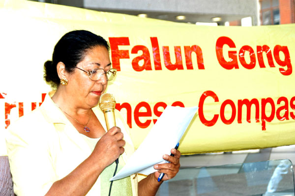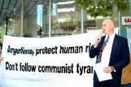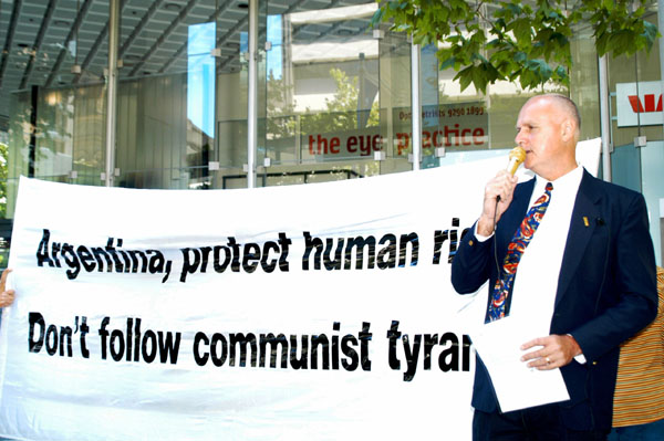 澳洲纽省法轮大法学会的负责人约翰·德尔(John Deller)宣读了给阿根廷领事馆的公开信。