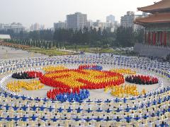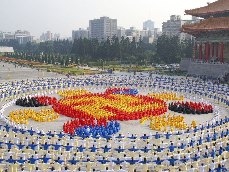 据自由时报2005年12月26日报导,四千多位台湾法轮大法学会学员昨天在台北中正纪念堂排出法轮图形,同时举办集体炼功活动。不仅有八十多岁的阿妈坐着轮椅前来排图形,四岁的小妹妹也有模有样,跟着爸爸、妈妈一起炼功。