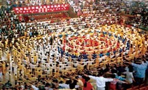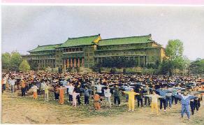 ![]() 1996年贵州法轮功修炼心得交流会 | ![]() 1996年长春法轮功学员集体炼功 |