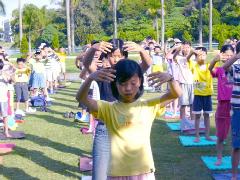 继1998年广州学员排组法轮图形,时隔七年,四千余人排成的法轮图形再现台北,震撼人心。在中共下令镇压法轮功前,大陆各地的集体炼功活动,场面也曾是如此盛大。在中共仍残酷迫害法轮功的今天,台湾学员排出法轮功的标记“法轮图形”,呈现海外各地自由学炼的盛况,也给予大陆法轮功学员积极声援与精神支持。