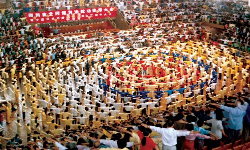 法轮功自1992年传出后,因为祛病健身的效果显著而广受大陆人民的喜爱。据中国1998年的官方调查,法轮功修炼者已达七千万人到一亿人。上亿人修炼后,个人重获健康、提升道德,而社会更节省了大量的医疗开销。神州大地处处可见成百上千的民众,在清晨时分自发的集体炼功。1996年武汉和1998年广州皆有近5000人参与“法轮图形”的排组活动,显示出法轮功当时在大陆的洪传盛况。
