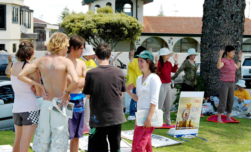 【明慧网2005年12月28日】2005年12月27日,新西兰法轮功学员来到度假胜地特让嘎洪法