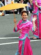![]() 游行队伍 | ![]() 向观众招手致意的西人学员(豪域区时报图片) |