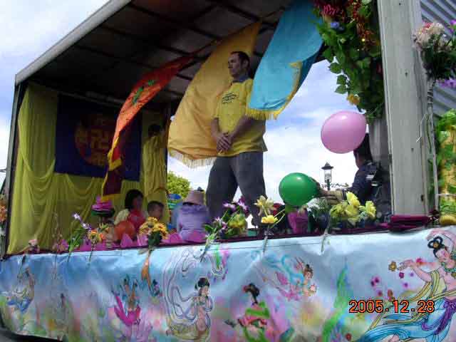 主办单位豪域区时报(Times)称法轮功团队为多彩的法轮大法队伍(Colorful Falun Dafa)。此次游行,学员们的游行队伍中既有着金黄色衣装的腰鼓队,又有色彩亮丽的中国民族服饰、仙女装,西人学员及小弟子在彩车上展示法轮功舒缓祥和的功法,广受欢迎。