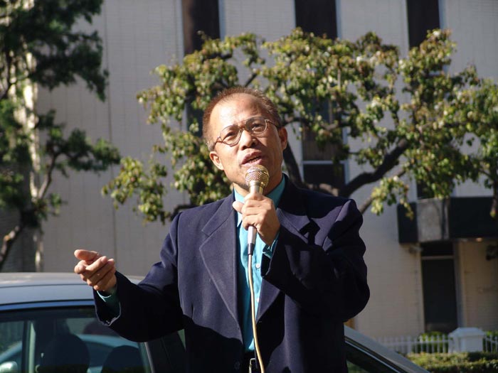 中国社会民主党美西负责人刘因全在发言中揭露,中共不承认迫害法轮功,然而事实是迫害每天都在发生。在他的家乡山东省昌邑市,他有一位中学时代的老师吴大钧,是个非常善良的人,已经退休了,就因为修炼法轮功,受到非常残酷的迫害。吴老师多次被挂上牌子游街,春节期间,脖子上挂着大牌子,在北孟镇镇政府所在地的大街上被罚站,后来又被送进精神病院。