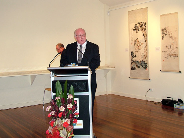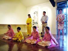 ![]() 市长凯利在开幕式上发言 | ![]() 法轮功学员为来宾展示法轮功功法 |