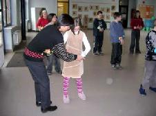 在介绍当中,一些孩子也告诉学员他们所知道的中国。法轮功学员给他们讲“一个小朋友与莲花的故事”,通过这个故事,说明修炼和法轮功是什么。接着学员们展示功法,并以简单的语言解释功法的内涵及目地。