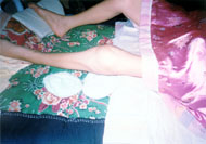 * 甘肃翟凤慈在劳教所被折磨后,双膝变形、手变形