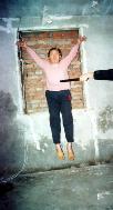 翟凤慈在劳教所遭到“蹲背式”酷刑折磨。她被强迫双腿跪蹲在高低床的下层地面上,下层床面(加上被褥子)高度距地面60--70公分,恶警把翟凤慈的胳膊背到身后,再分别从左右两侧的床头空格处拉进去,胳膊之间的间距约三尺左右,将两手腕对铐在一起后,再将两手放置床面。这样造成她无法直腰、仰头,脚不能着地,只能靠脚尖的一点力量支撑全身。当时感觉肩膀就象被人掰断一样剧疼,全身不管哪儿一动,手铐就越扎进肉里,7天7夜,剧烈的疼痛几乎使她窒息。她被折磨得呕吐、气息奄奄,双脚半截鞋磨开花,脚趾变形。