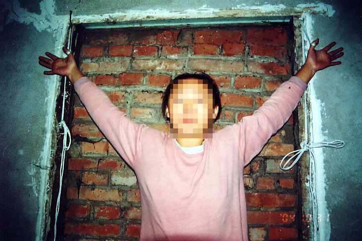 在万家劳教所里,付丽受尽折磨。她被恶警用绳子捆绑两个大拇指,再将人吊起,大拇指承受着全身的重量,致使付丽双手残疾,生活不能自理。