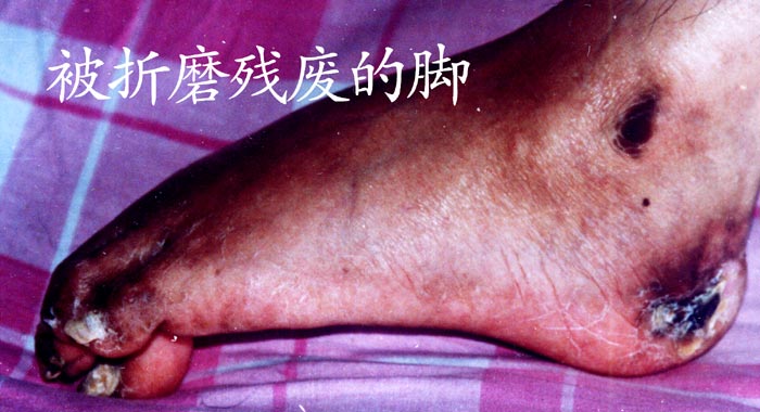 后来,王新春的双脚溃烂脱落,这场邪恶的迫害给他造成了终生残疾。