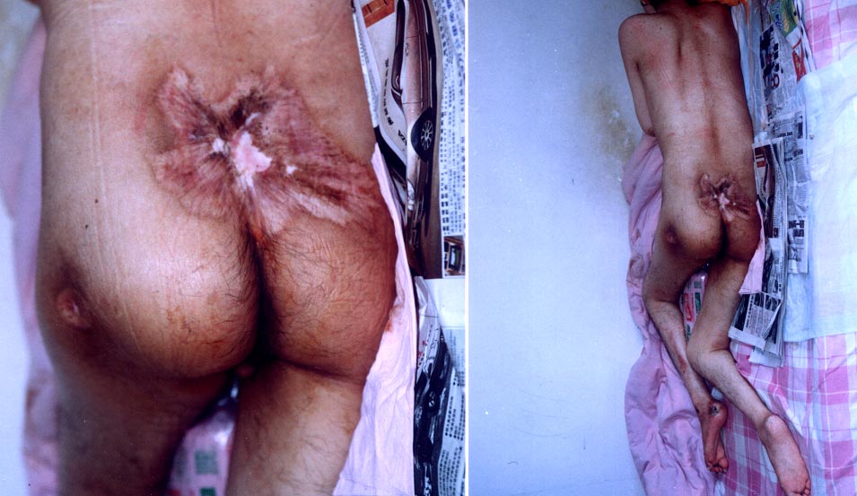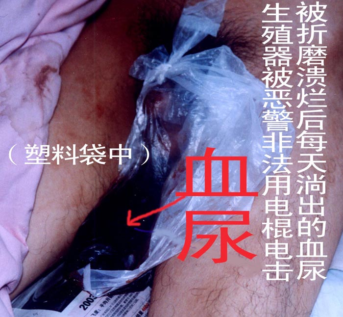被折磨残废的脚 | 被长时间电击而溃烂的生殖器 | 血尿