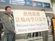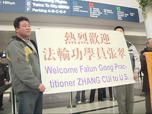 【明慧网2005年2月3日】2005年2月1日,对于法轮功学员徐志伟和他的母亲张翠女士来说可以说是终身难忘的,因为中共江氏集团对法轮功的迫害,这对母子天涯相隔无法相见长达八年。在这过去的八年里,徐志伟的家庭经历了母亲因为修炼法轮功而在中国被非法抓捕两次,举家被抄,护照没收;父亲病重去世,他本人却因护照被拒绝延期而无法回国探望等等变故,而作为唯一的孩子,徐志伟在海外也進行长达五年的营救母亲的活动。在海外法轮功学员的努力下,在美国参众两院的议员们的正义支持下,分别八年的母子终于团圆,在芝加哥奥黑尔(O’Hare)国际机场里,当母子再次相见相拥抱头哭泣的时候,许多一旁观看的人们都不禁流下了泪水……新唐人电视台和芝加哥每日信息报(Chicago Daily Herald)专门到现场采访,记录下了这一感人时刻。