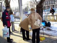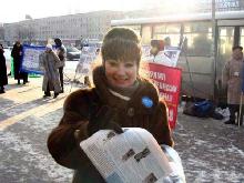2005年1月29日俄罗斯圣-彼得堡法轮功学员在本市纳夫斯卡亚地铁站集会,讲真象。