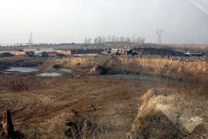图:长春市朝阳沟劳教所的砖厂前的大坑。在2001年至2002年期间,朝阳沟劳教所强迫大法学员同犯人们每天挖土运土,为砖厂造砖提供材料。分4组,6、7人一组,每组中一人推一吨的翻斗车,其他人挖土,一车装近一吨半的土,最高频次一分钟一车,一天达800车,这个坑就是当时大法学员被强迫同犯人们挖土生成的。