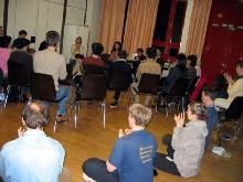 学员们在第一天学习李老师最近在曼哈顿法轮大法心得交流会上的讲法,接着是就他们最近致力讲清中国同修遭受迫害真象的心得及体会進行交流。第二天,许多新学员参加会议。大家一起学习法轮大法的主要书籍─《转法轮》。