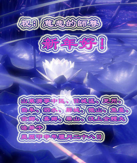在此新春到来之际,山东大法弟子恭祝师父新年好!师父辛苦了,弟子们想念您……