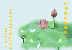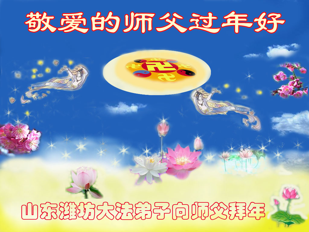 敬爱的师父:您好,您辛苦了,在新年到来之际,弟子们更加想念师父,我们山东潍坊全体大法弟子给您拜年了!