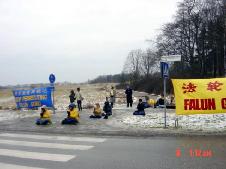 【明慧网2005年2月9日】2005年2月6日,中国农历新年前夕,瑞典斯德哥尔摩法轮功学员来到中使馆前進行和平请愿,呼吁立即停止在中国对法轮功的残酷