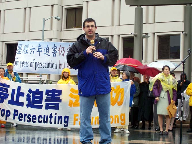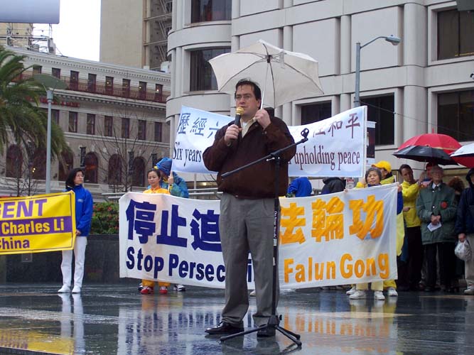 旧金山市议员克里斯-戴利也出席了集会。在谈到2月中旬中共黑手干扰法轮功参加新年游行时,戴利在集会上说,“大家可能听说了上周在旧金山举行的新年游行,一开始我听说法轮功的游行申请被拒绝了,我马上跟我的法轮功朋友说,我参加这个游行,如果你们不能参加游行,你们可以跟我一起参加游行。”