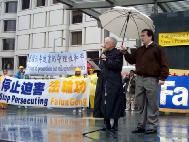 英国前资深外交官瑟罗勋爵也前来支持,他在集会上说,我们应该让更多的人了解到发生在中国的迫害,因为揭露邪恶是结束5年半的迫害最有力量的武器。在过去的50年中,中共犯下了许多罪行。现今,许多法轮功学员被折磨致死,甚至是孩子他们也不放过。而这些迫害却被中共用谎言宣传企图掩盖,不光欺骗中国的人民,还通过其驻海外的使领馆欺骗海外的华人。他说,“不允许再这样继续下去了。自由世界的媒体有责任让中国人民了解真象。我们呼吁所有的媒体为法轮功学员说话。”