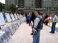 在集会现场还举办了酷刑展和真善忍画展,一位在呼吁停止迫害的黄布上签名的男士说,我非常高兴你们能把这些告诉人们,因为很多发生在中国的消息都被封锁了,外界不知道在中国到底发生了什么。我今天是第一次了解到在中国发生的迫害,迫害不应该发生。