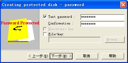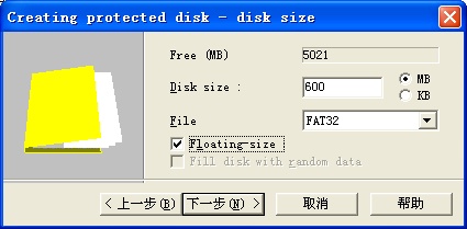 创建新虚拟磁盘文件。在主窗口中按“Create...”按钮开始“Creating protected disk”向导: