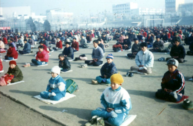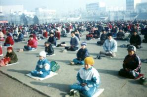 图片说明:(1)(2)这两幅图片是一九九九年元月一日在山东省莱西市体育场拍摄的。莱西市虽是个小县城,但是几千人的洪法炼功场面却如此的壮观,吸引了很多群众前来观看,还有很多人当时就進来学功。