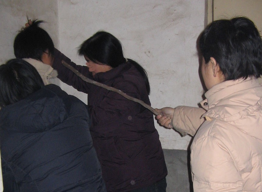 演示图5 (以上为模拟当初邪恶之徒迫害大法弟子的照片,有一些道具是后期合成的。)