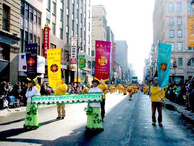 ![]() 法轮功学员参加圣派翠克节游行 | ![]() 法轮功学员的腰鼓阵 |