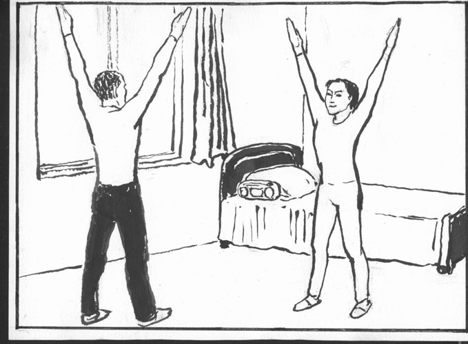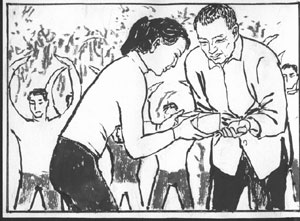 10、第七天,我父亲就高高兴兴的去炼功点学炼动作,第九天就回来教妹妹炼功了。