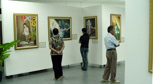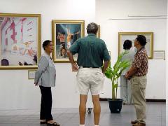 ![]() 画展开幕剪彩 | ![]() 参观画展的人们 |