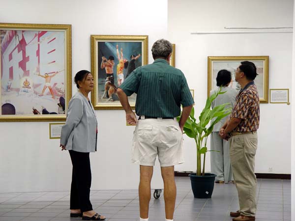 一位非常热爱艺术的警察 Kern 先生特地前来参观画展,他对画作中油画纯正、细腻的风格非常欣赏,对于中国的恶警及迫害表示非常的惋惜与痛心。