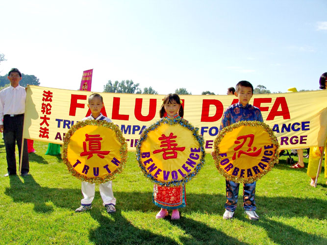 法轮功学员的队伍所到之处赢得阵阵掌声,不时听到有人在叫:“法轮大法”,“法轮大法”。