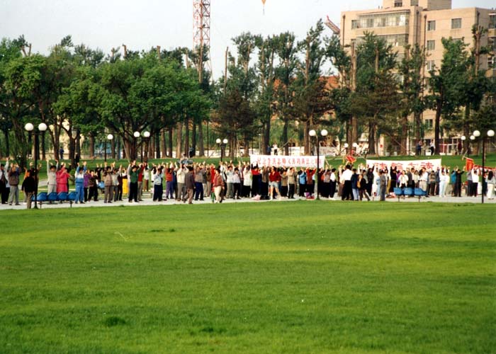历史图片:1999年7.20前大连市的法轮功晨炼和法会