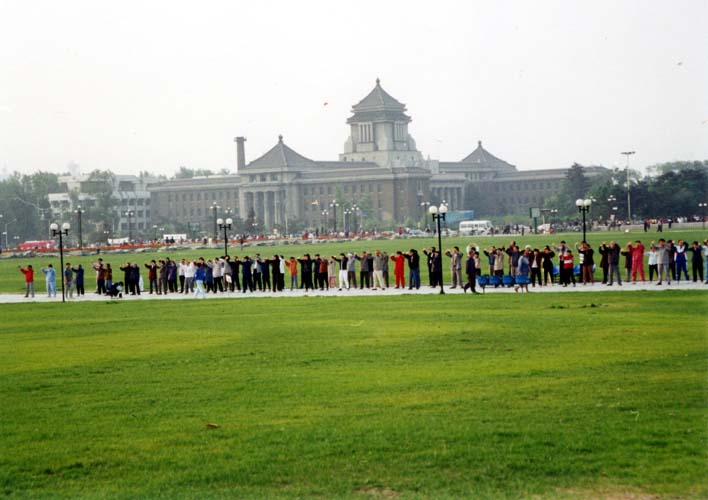 【明慧网2005年3月25日】本图为1999年以前,在长春市文化广场(即原长春地质宫),长春大法弟子集体炼功场面。