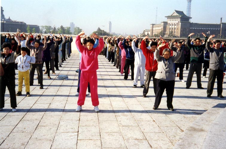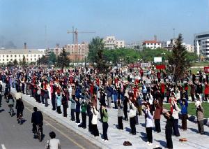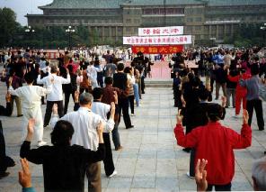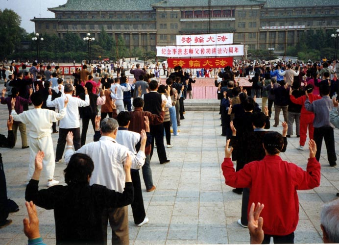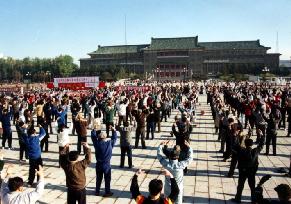 图片:99年前,长春大法弟子在文化广场集体炼功