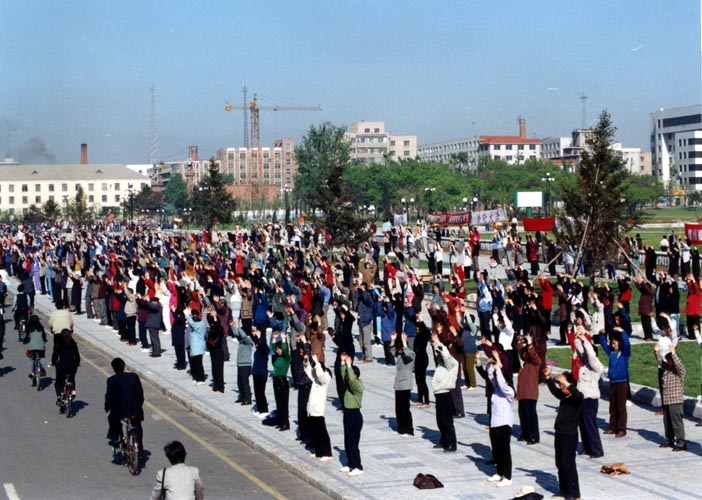 历史图片:1999年7.20前长春法轮功学员炼功学法场面