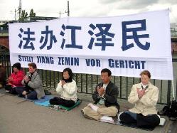 ![]() 2004年5月27、28日,德国法轮功学员在柏林中国使馆前请愿,支持美国芝加哥的起诉江泽民案。 |