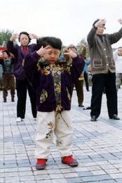 历史图片:1999年7.20前大连市的法轮功晨炼和法会