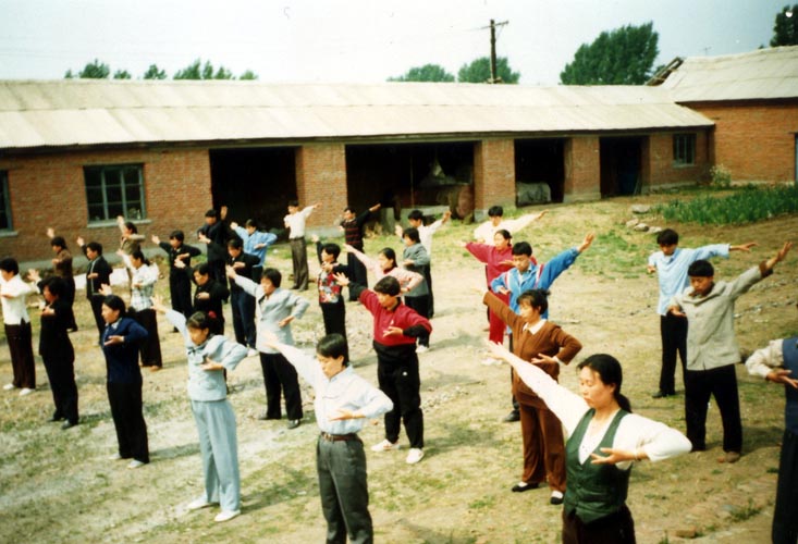 图片:1998年10月份,胜利油田大法弟子在钻井集体炼功