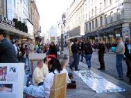 联合国人权会议期间,瑞士法轮功学员走上日内瓦街头,每周举行反酷刑展,以揭露江氏集团在中国大陆对法轮功学员的残酷迫害。