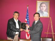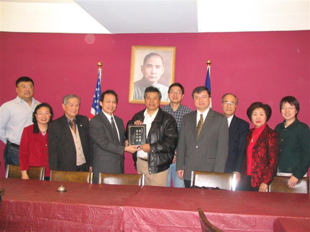 ![]() 中华会馆的侨领们与法轮功学员合影留念 | ![]() 中华会馆主席黄浩源向法轮功学员颁奖 | ![]() 奖牌 |