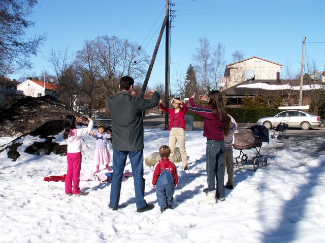 很多孩子跟随家长也参加了这次活动。早在几天前,他们就已经对此翘首以待了。再次见到瑞典明慧学校的同学和小朋友们,他们感到兴奋。一位带着两个孩子来的母亲对大家说:“这两个孩子一直热切期待着我们这次复活节的聚会。他们在这里与其他孩子一起很开心。由于我们都是修炼‘真、善、忍’的大法弟子,所以这个场很祥和。孩子们在这个场中受益匪浅。”
