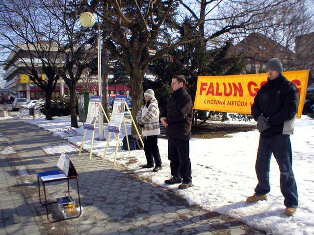 傍晚,法轮功学员前往在佩兹那克举行的一个远东电影节,展示五套功法,并呼吁民众关注迫害。
