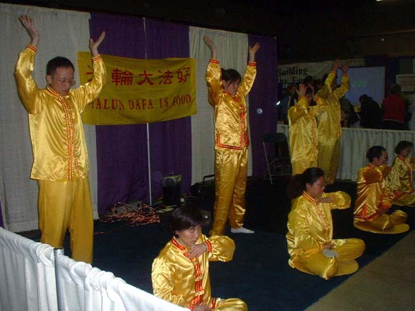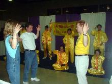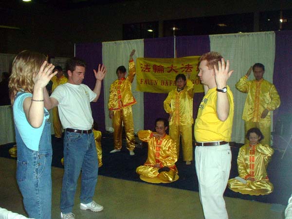 法轮功学员進行的两次功法表演也吸引众多的观众,有的观众当场便学起了五套功法。很多人在拿了洪法传单后表示一定要学。