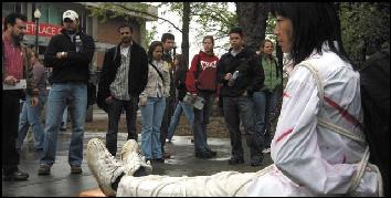 为了唤起学生们关注发生在中国的迫害,法轮功学员在加州州立大学演示了他们在中国所遭受的残酷虐待和酷刑。