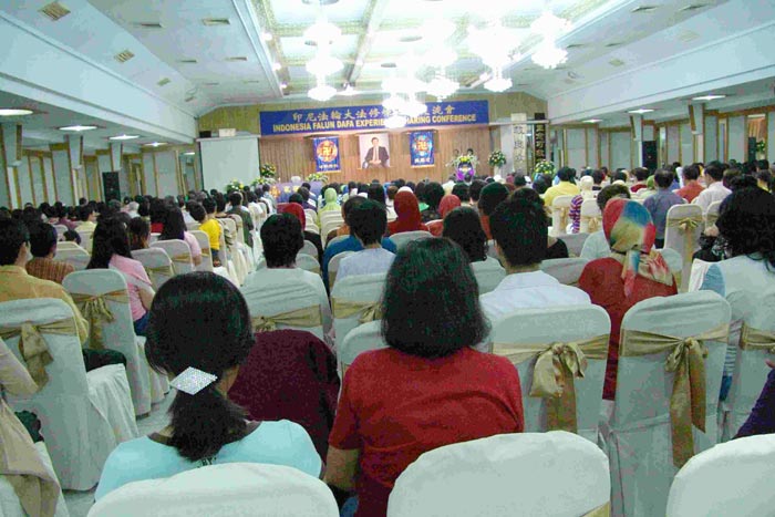 学员发言之前,印尼苏岛体育总会给法轮大法颁发褒奖,在会上由印尼佛学会会长许文泰代领。