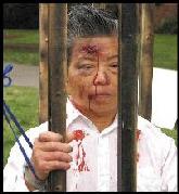 ![]() 酷刑演示引起了学生们的关注 | ![]() 酷刑演示:被关在笼子里 |