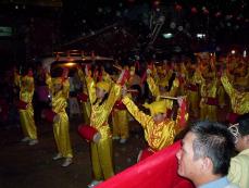 驻足观看的居民都说,“主办单位今年怎么有办法请到如此庞大腰鼓队伍,真是太美好了!太震撼!”当队伍来到拱天宫庙前,法轮功学员齐唰唰的表演“鼓乐神威”,动作整齐划一,获得满堂彩,活动主办者更是笑得合不拢嘴,一再感谢法轮功腰鼓队的到来,也希望下次能有机会再邀请法轮功学员参加盛会。